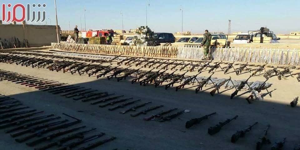 На странице проправительственного военного источника в сети Twitter (watanisy) были опубликованы фотографии, на которых запечатлены новые военные трофеи сирийских войск — большое количество пулеметных установок, автоматов, военных пикапов и танков. Техника и боеприпасы были обнаружены в районе населенных пунктов, расположенных между городами Меядин и Абу Кемаль.