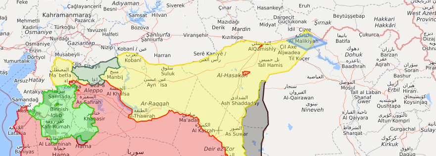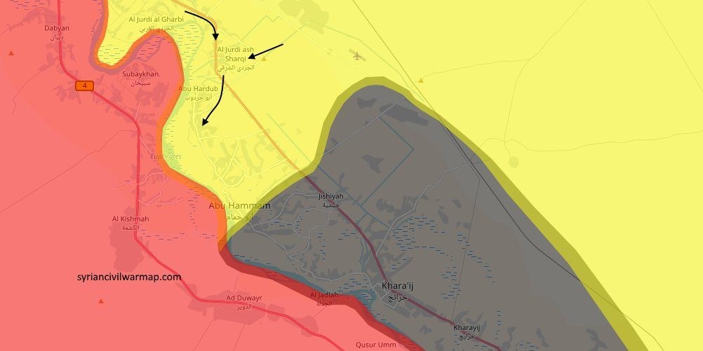 Тем временем ИГИЛовцы, противостоящие альянсу «Тахрир Аш-Шам» северо-восточнее Хамы, прорвали линию обороны противника и значительно приблизились к Идлибу. Согласно информации информагентства AMN, под контроль террористической группировки перешли деревни Хувайс Ибн-Хатиб, Калат Эль-Хувайс, Хувайс Ум-Аль-Джарн и Джабал- Хувайс. Сведений о потерях сторон не поступало.