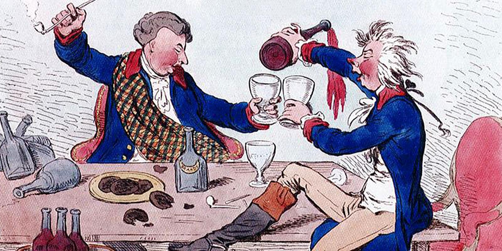 Типичный пример неразрывной связи пьянства с благородными разборками — история лорда Сэквилла. Командуя кавалерией в сражении при Миндене в 1759 году, он не подчинился приказу атаковать противника, что привело к суду и позорному отстранению Сэквилла от военной службы. Лорд заслужил репутацию труса и презрение военных. Во время застолья полковник Джонстон придрался к словам бывшего генерала и вызвал его на дуэль. Но на дуэли лорд Сэквилл держался столь храбро и достойно, что общество сняло с него обвинения в трусости и доброе имя генерала было восстановлено.