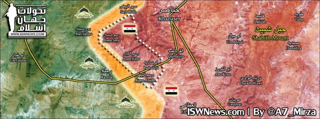 На юге провинции Идлиб, севере провинции Хама и юге провинции Алеппо САА и Силы национальной обороны освободили от террористов Хайят Тахрир аш-Шам (бывшая Джебхат ан-Нусра, сирийское крыло аль-Каиды) деревни Рашадия, Расм аль-Бид, Расм Сайяль, Расм Кибар, Зилакьят, Зилен и Машрифа.