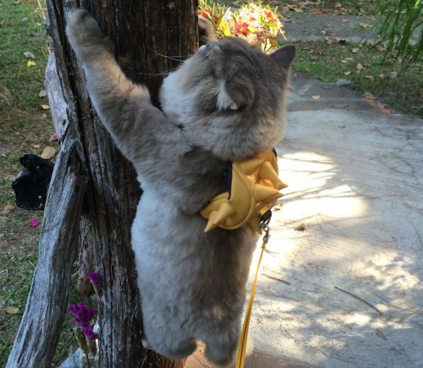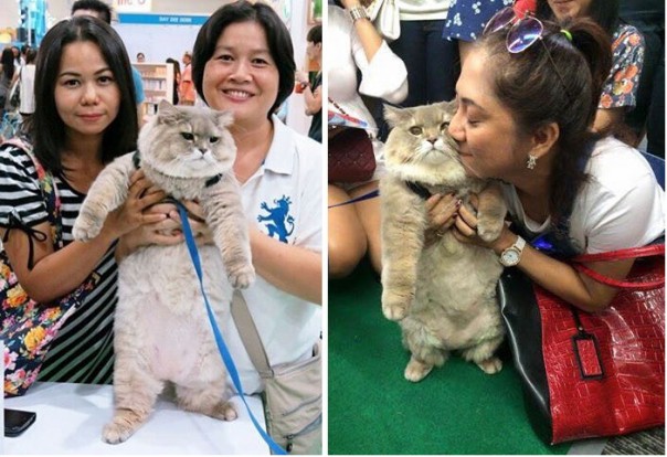 Котик живет в Таиланде. Там его любят и балуют. Каждый, кто с ним встречается, делает с ним фотографию на память и поглаживает его брюхо. Причем всё это абсолютно бесплатно.
