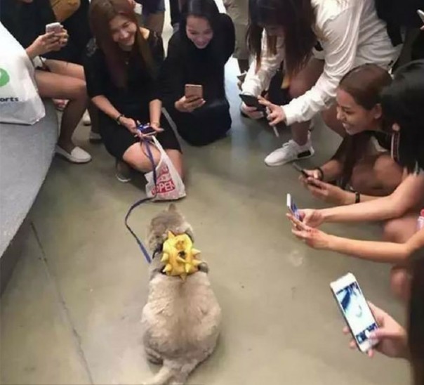 Тискают Бон-Бона все, кому не лень и направляют на него камеры своих Айфонов. Но пушистик не противится. На удивление ведет он себя очень спокойно и дружелюбно. И совсем не выглядит замученным.