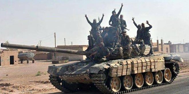 Как подчеркнул источник, армейские подразделения при поддержке отрядов народного ополчения продолжают военную операцию на северо-востоке провинции Хама, преследуя остатки террористов «Джебхат Ан-Нусры». В ходе операции уничтожено и ранено множество террористов вместе с их оружием и военной техникой, также разгромлены их укрепления.