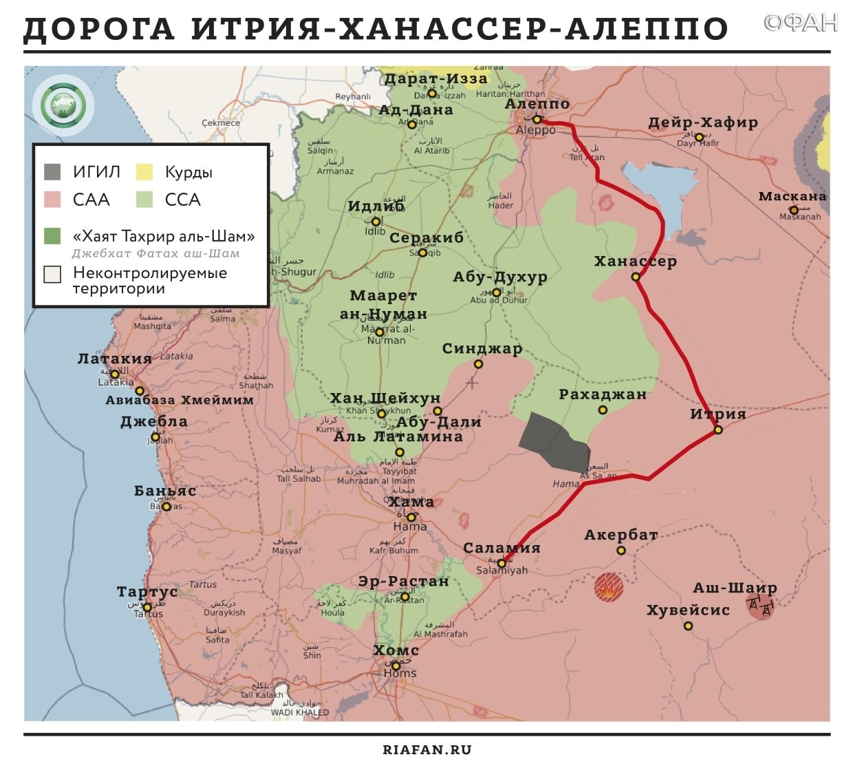 Как передает военный источник в социальной сети Telegram (daraa_now), исламисты покинули ранее занимаемые районы. Таким образом, силы САР расширили буферную зону вокруг стратегической магистрали Алеппо — Ханассер — Итрия — Саламия — Хама.
