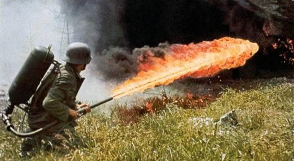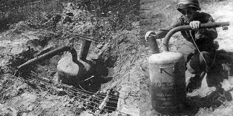 Плотное послевоенное сотрудничество СССР и Веймарской республики область зажигательного оружия не затронуло, так что для немцев фугасные огнемёты в 1941 году оказались очень зажигательным сюрпризом. Вскоре они прилежно скопировали ФОГ-1 для собственных нужд под зуболомным названием Abwehrflammenwerfer 42. Мы, кстати, и ранцевые огнемёты допилили, но, в отличие от фугасных, советские ранцевые немцев не интересовали: у них были свои, ничем не уступавшие.