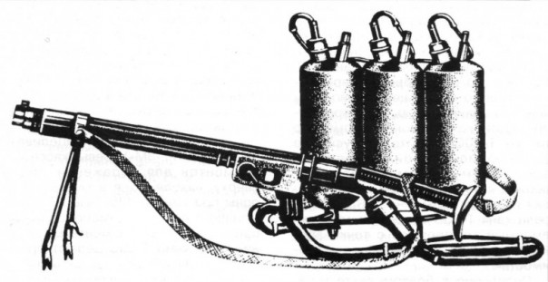 Ещё он разрабатывал аналогично устроенный переносной ранцевый огнемёт: керосин под давлением выбрасывался из брандспойта и воспламенялся зажигателем. Главное инженерное управление от этих шайтан-конструкций с ужасом отмахалось, в основном из-за небезопасности и уязвимости трубопроводов, подававших керосин. Но именно этот год мы можем считать годом рождения огнемётов на российской земле.
