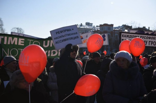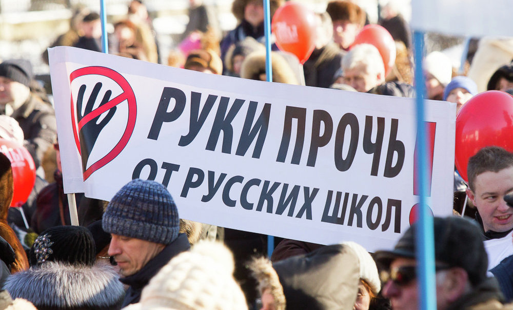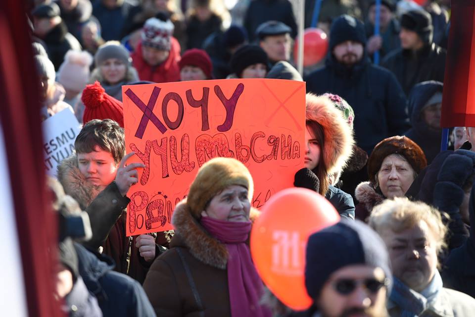 24 февраля в Риге русскоязычные жители митинговали против перевода школ национальных меньшинств на латышский язык обучения