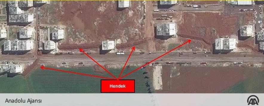 12.25 Турецкие СМИ сообщают о появившихся на окраинах курдского Африна фортификационных сооружениях. На фото, опубликованных агентством Anadolu видны окопы и оборонительные валы, созданные по периметру города.
