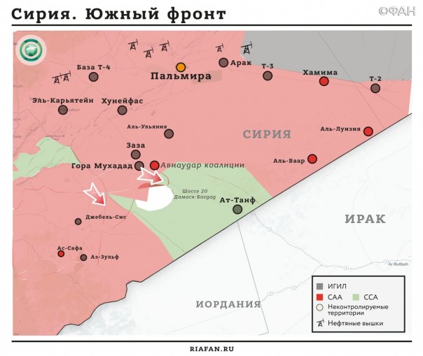 Ранее сообщалось, что на военной базе США в Ат-Танфе идет подготовка боевиков, которых перебросят в юго-восточную часть Дамаска в качестве подкрепления для группировок радикальной оппозиции.