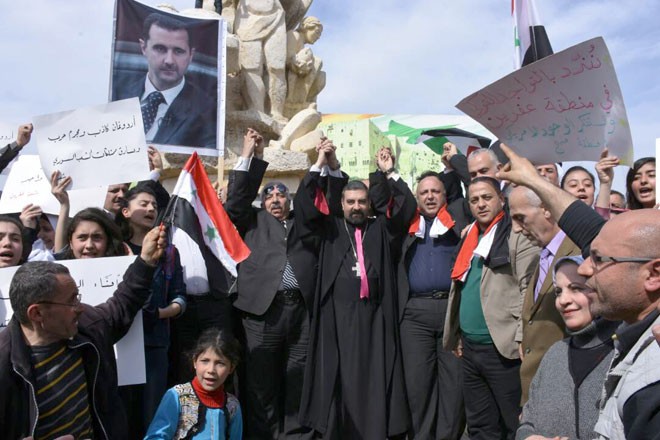 Жители Алеппо вышли на акцию протеста против агрессии Турции на территории Сирии (фоторепортаж)
