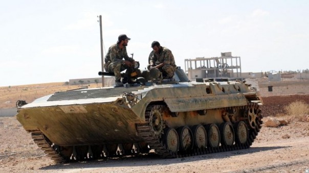 Сирийский БМП-1 сожженный вместе с экипажем боевиками ИГ* в районе Аль-Кадам
