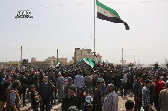 12.15 Сторонники «Сирийской свободной армии» провели митинг у пограничного перехода Бас-ас-Салам на границе с Турцией. Собравшиеся требовали от армии Турции и ее союзников по операции «Оливковая ветвь» продолжить операцию на севере Сирии и взять арабский город Тель-Рифат, в настоящий момент удерживаемый курдами.