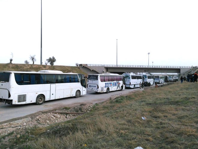 Из города Хараста на 37 автобусах выехали в провинцию Идлеб 2373 человека, из них 828 боевиков. За прошедшие два дня из города Хараста выехали 67 автобусов с 3953 человек, из них 1241 боевик.
