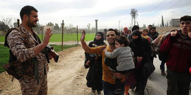 Ранее корреспондент агентства САНА сообщил, что на окраину посёлка Арбин в Восточной Гуте прибыли первые автобусы, предназначенные для отправки отрицающих примирение членов бандформирований из Джобара, Земельки Айн-Термы и Арбина, а также их семей в провинцию Идлеб.