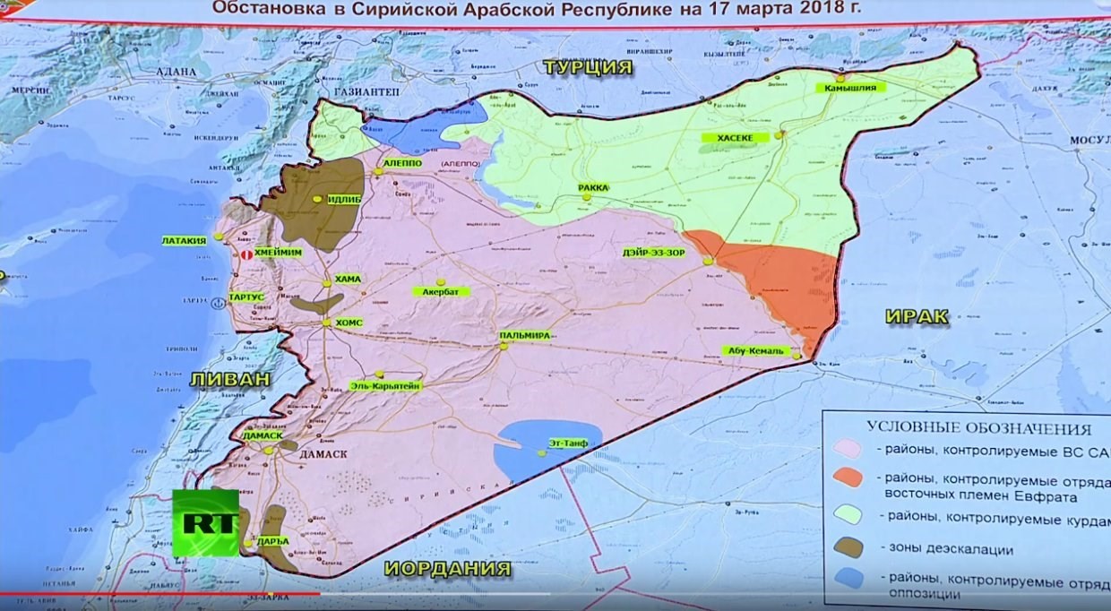 Предположение о неподконтрольности «Демократическим силам Сирии» юго-восточного района провинции Дейр-эз-Зор также подтверждается картой, которая 17 марта была продемонстрирована на брифинге начальника Главного оперативного управления Генштаба ВС РФ генерал-полковника Сергея Рудского. Данный район на карте, составленной российским Минобороны, находится не под контролем курдов, а под контролем отрядов восточных племен Евфрата, которые всегда были известны своими симпатиями к «Исламскому государству».
