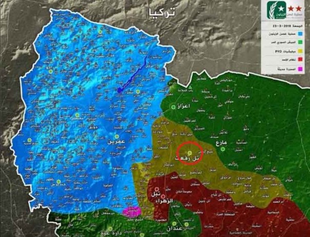 Несмотря на официальное заявление Министерства обороны РФ от том, что российские специалисты выведены из Таль-Рифаата, расположенного на востоке кантона Африн, исходя из последних данных в городе и его окрестностях по прежнему присутствуют военные.
