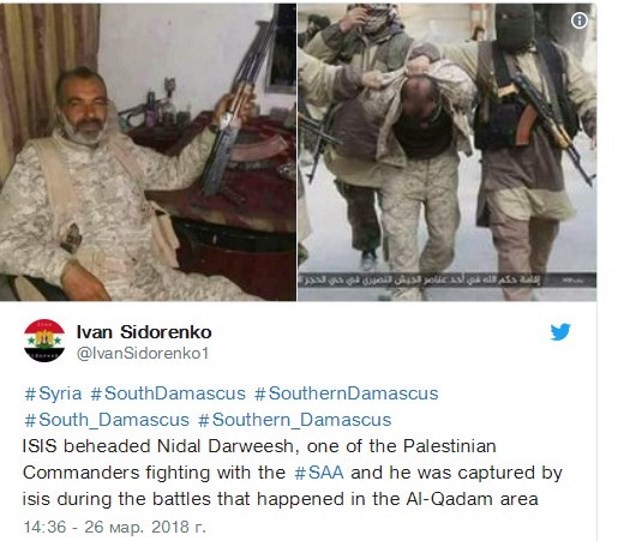 Боевики ИГ на юге Дамаска обезглавили командира проправительственного подразделения