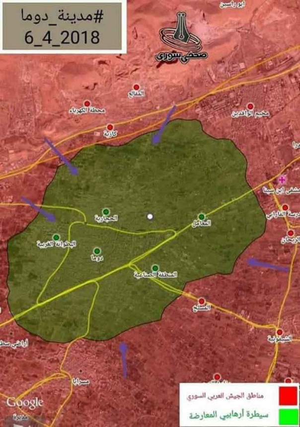 Впрочем, на данный момент, оборона исламистов уже начала сыпаться. Задействованные командованием ВС САР силы в несколько раз превосходят боевиков по численности, поэтому они вынуждены постепенно отступать. Ожидается, что освобождение Думы займет несколько дней.
