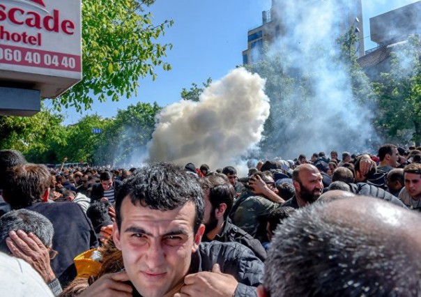 Напомним, армянская оппозиция, которая не хочет видеть экс-президента Сержа Саргсяна премьер-министром страны, с самого утра вывела своих сторонников в центр Еревана. Митингующие блокируют улицы и строят баррикады. Источник