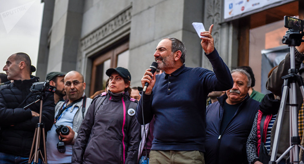 Предводителем майдана выступает 42-летний депутат Никол Воваевич Пашинян, лидер либеральной парламентской фракции "Елк", руководитель партии "Гражданский договор". Он - профессиональный журналист и профессиональный революционер. Окончил отделение журналистики филологического факультета Ереванского государственного университета. Работал корреспондентом газет "Дпрутюн", "Лрагир", "Лрагир-ор", "Молорак", главным редактором газет "Орагир" и "Айкакан жаманак". В 2008 году являлся членом предвыборного штаба кандидата в президенты Левона Акоповича Тер-Петросяна (первого президента независимой Армении). Стал одним из организаторов массовых беспорядков в феврале-марте 2008 года, которые закончились трупами, разграбленными магазинами и введением чрезвычайного положения. После беспорядков находился в розыске. Через год сдался властям, приговорён к семи годам лишения свободы, освобождён по амнистии в мае 2011 года. В 2012 году избран депутатом Национального собрания от праволиберального Армянского национального конгресса. 9 декабря 2013 года создал общественно-политический союз "Гражданский договор" (Քաղաքացիական պայմանագիր), преобразованный 30.05.2015 в оппозиционную политическую партию. 12 декабря 2016 года "Гражданский договор" стал соучредителем блока "Елк" ("Исход"), объединяющего адептов евроинтеграции, борцунов за выход Армении из Евразийского экономического союза. В апреле 2017 года Пашинян избран депутатом Национального собрания от "Исхода".