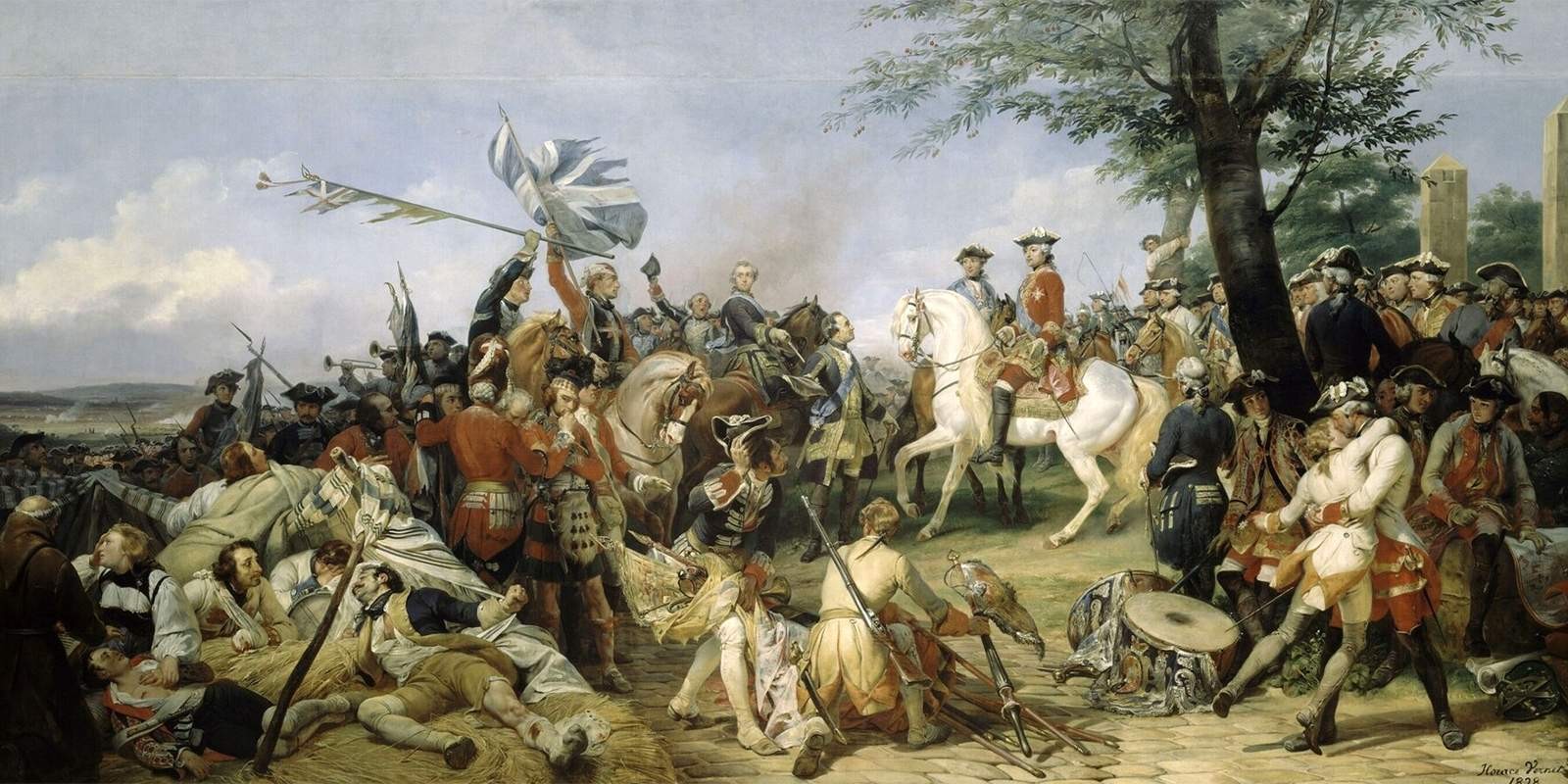 Мориц Саксонский передаёт королю захваченные в битве при Фонтенуа британские знамёна. Орас Верне