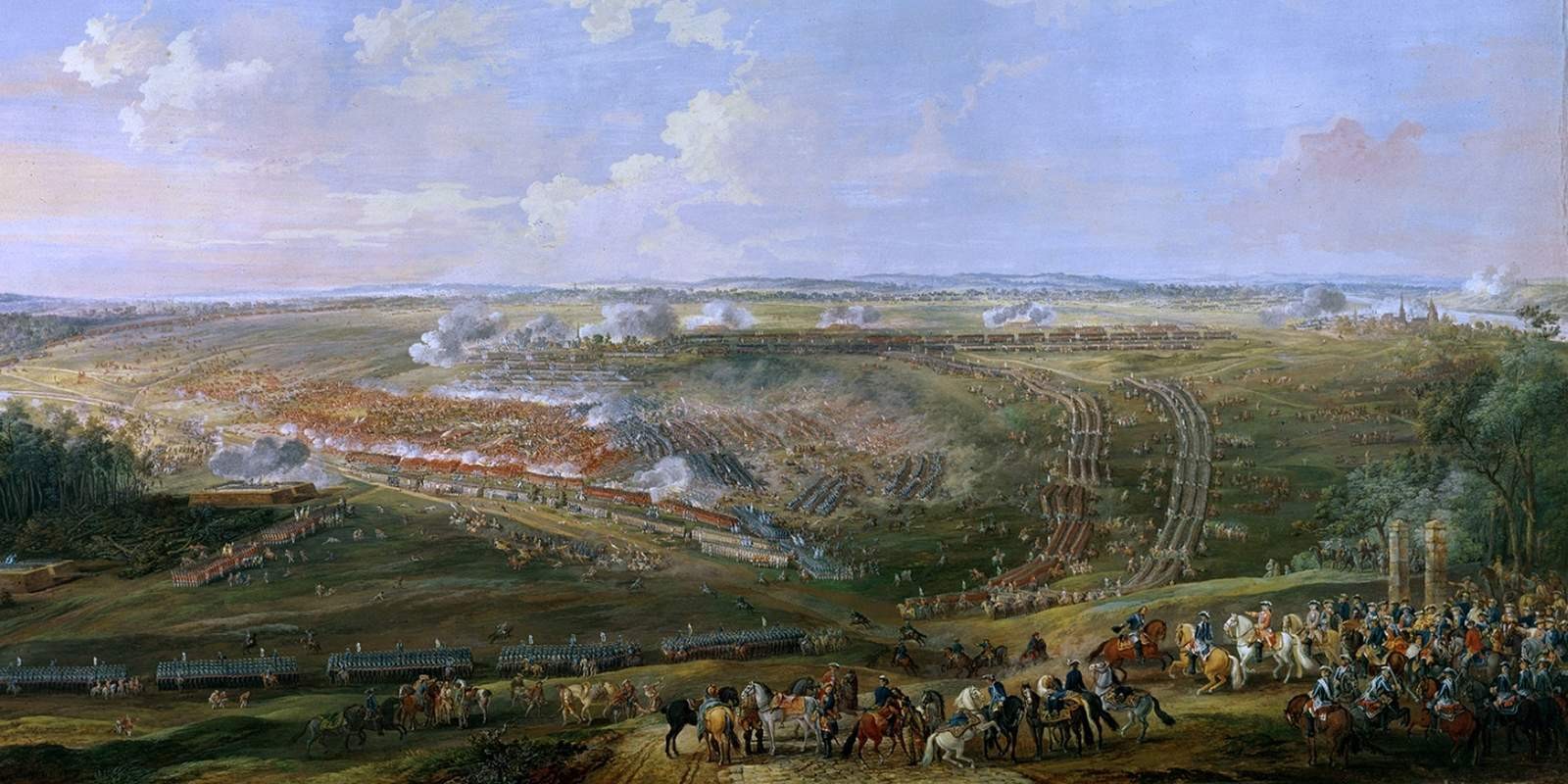 В этой картине австрийский художник Гиацинт де ля Пенья — сам, кстати, служивший в армии — показывает сражение при Фонтенуа как типичную для этой эпохи огромную панораму с ровно стоящими линиями войск. Которые ждут приказа, чтобы начать бой.