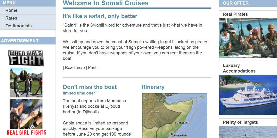 Скриншот страницы сайта с круизами вокруг Сомали