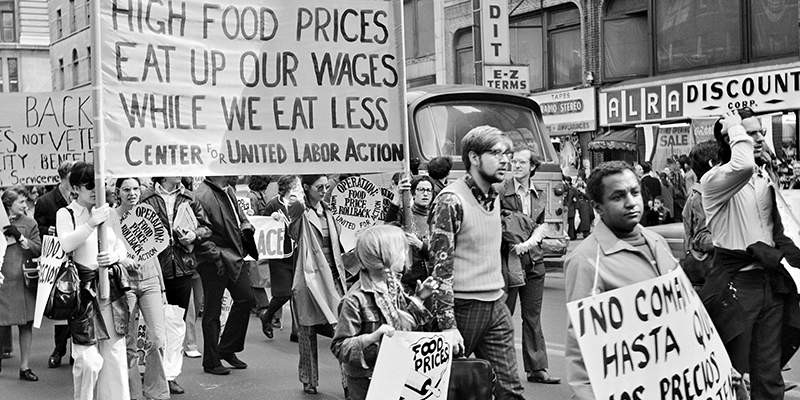Жители Нью-Йорка протестуют против высоких цен на продовольствие, 1970 год