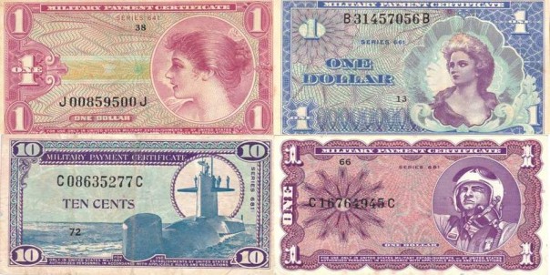 Тем временем играми с обменом стали массово заниматься американские джи-ай (GI, «американские солдаты» на сленге), а их в стране толпилось уже до полумиллиона человек. Всё тихо катилось в ад. Тогда в Вашингтоне придумали ввести военные платёжные сертификаты (Military Payment Certificate — MPC). Это были красиво отпечатанные платёжные обязательства американского министерства обороны, на которых указывалось, что их могут использовать только военные США и только в учреждениях США (впрочем, сферу оборота то сужали, то расширяли).