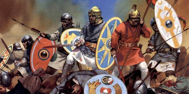 После падения Рима в 476 году в Европе исчезли постоянные профессиональные армии. На полях сражений господствовали дружины вождей германских племён и царил постапокалипсис, сошедший на руины античного мира. Самые богатые и знатные германские воины могли позволить себе некое подобие римского доспеха, порой украшенное с варварской роскошью.