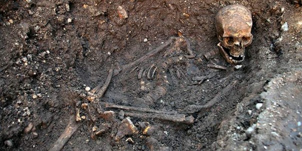 Могила, в которой находилось тело, была слишком мала и, вероятно, выкапывалась в спешке. Тело просто скинули в неё без всякого гроба или савана и закопали.