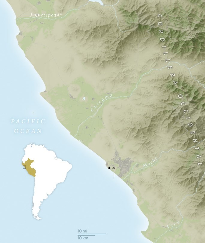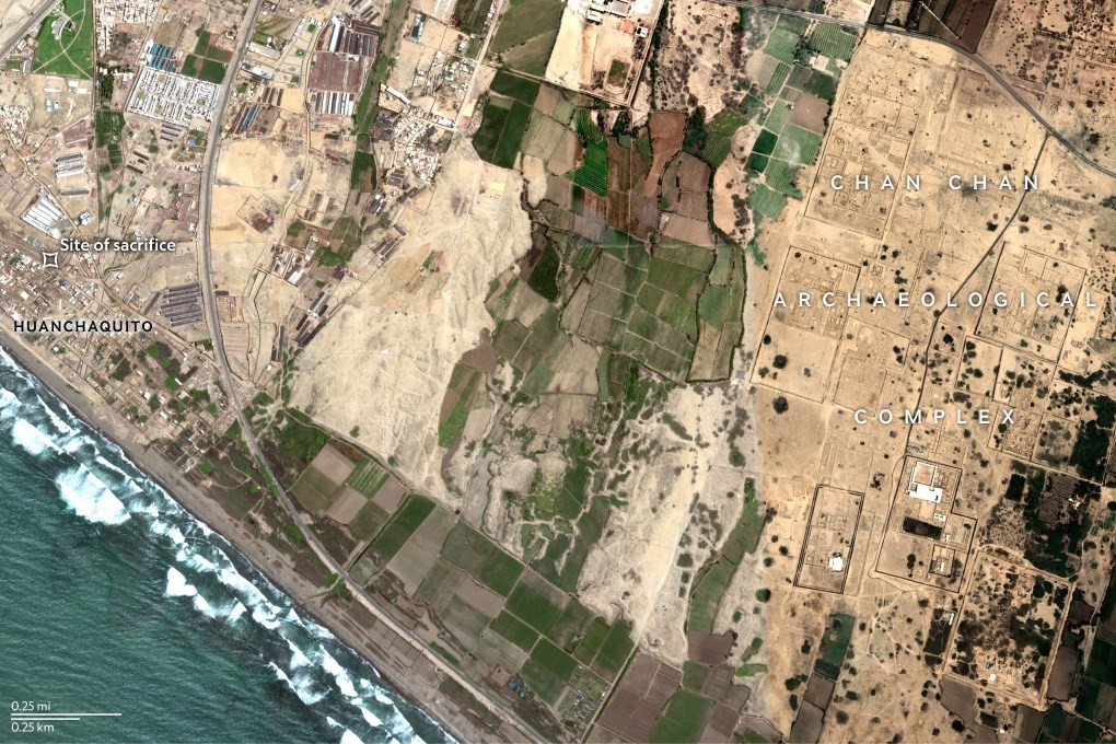 В 300 метрах от побережья, в археологической местности Хуанчакито-Лас Лламас (пригород Трухильо), среди руин 3500-летнего храма были найдены останки 42 детей и 76 лам. До недавнего времени это считалось крупнейшим в мире свидетельством ритуального убийства детей. По завершении экспедиции стало известно, что общее число жертв оказалось значительно выше.
