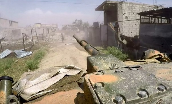 Наша съемочная группа сопровождала операцию и стала свидетелем краха обороны террористов в районе Хаджар аль-Асуад. Нам удалось заснять много эксклюзивных кадров, в том числе танковых боев в городских кварталах. Anna-news