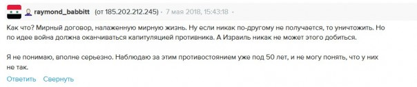 Мирный договор с кем? Палестина едина лишь на уровне общих разговоров. В действительности она представляет собой причудливую смесь всяких группировок, в том числе ХАМАС, ХЕЗБОЛЛА, Мученики Аль-Аксы, ООП. Причем все они еще и между собой грызутся порой непримиримо. Это не говоря про влияние на них Ирана, США и монархий Залива.