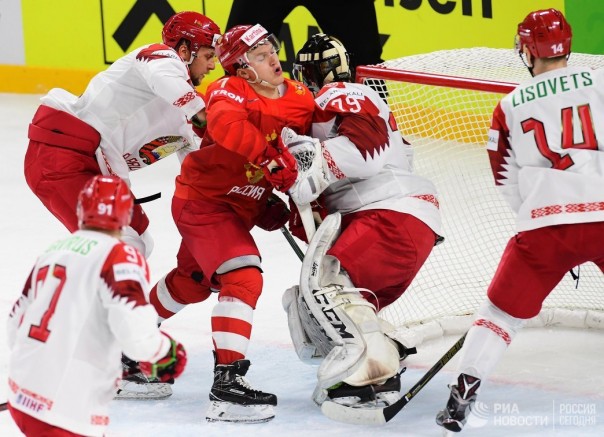 Сборная России по хоккею одержала победу над командой Белоруссии в матче группового этапа чемпионата мира в Дании.