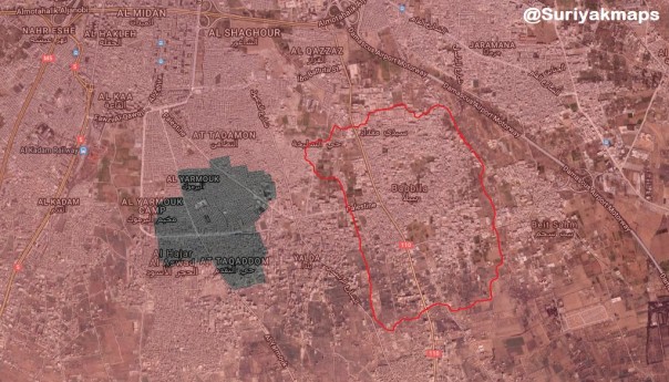 14.30 Одновременно с наступлением на позиции исламистов на восточном фасе анклава «Ярмук», САА продолжают теснить противника также на юго-западе анклава. В результате наступления правительственных сил, боевики были выбиты из ряда кварталов в городской застройке, включая школу Анварва и Народное бюро труда.