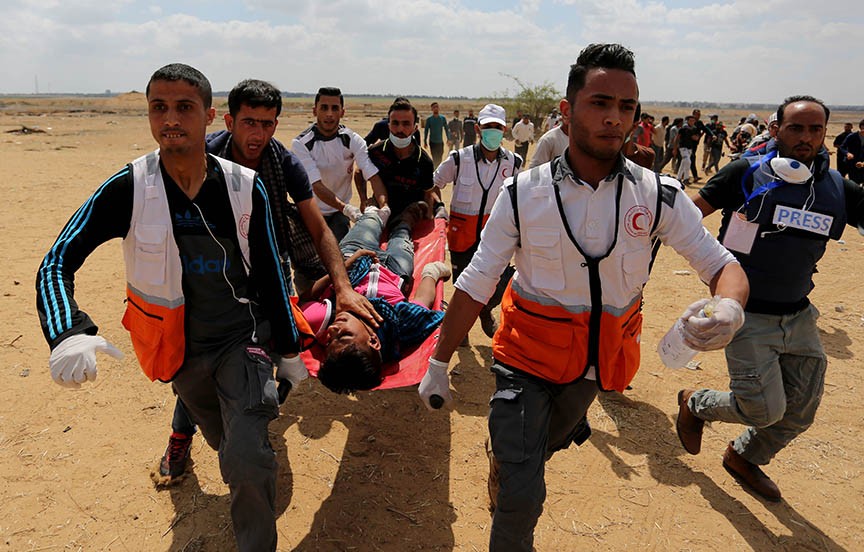 Как сообщает Союз палестинских журналистов, девять представителей СМИ, которые освещали акции протеста на границе с Газой, получили ранения боевыми пулями.