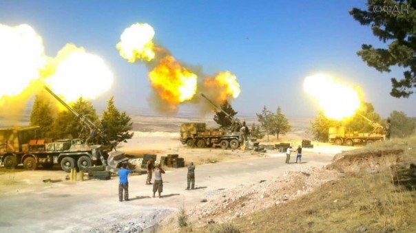Одновременно с войсковой операцией на земле ВВС и артиллеристы также наносят точные массированные удары по укрытиям и схронам ДАИШ, выводя из строя укрывшихся под землёй террористов и их военную технику.