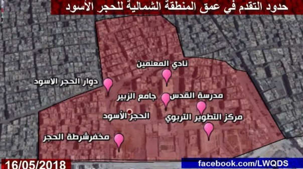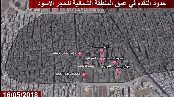 На юге Дамаска САА и ее союзники освободили от ИГИЛ* ряд позиций возле мечети аль-Кудс в районе лагеря беженцев Ярмук. Кроме того, правительственные войска продвинулись вглубь позиций ИГИЛ в северной части района аль-Хаджар аль-Асвад.