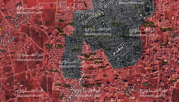 17.40 ВКС РФ начали массированные налеты на территорию анклава боевиков ИГ* в ар-Ярмук. Силами авиации уничтожаются объекты террористов в Ярмук, Хаджр-аль-Асвад и аль-Тадамон. Одновременно с тем, интенсивность артиллерийских обстрелов увеличила 42-я бригада 4-й дивизии САА. Можно констатировать, что союзные силы добиваются скорейшей ликвидации анклава для переброски армейских подкреплений в провинцию Дераа.