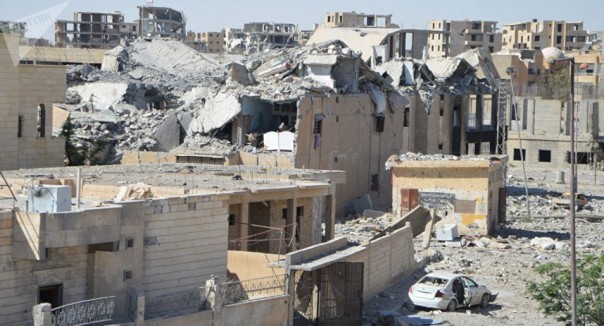 Город Ракка, который ранее использовался боевиками ИГИЛ* как столица так называемого “халифата”, был освобожден в октябре 2017 года курдскими “Сирийскими демократическими силами” при подержке массированных авиаударов западной коалиции, в результате чего были полностью разрушены все городские кварталы.