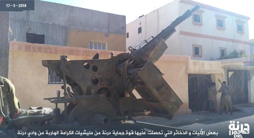 11.50 Ливийская национальная армия вновь потерпела поражение в боях с джихадистами, контролирующими город Дерна. Боевики контратаковали наступающие части армии западнее города и нанесли им ощутимые потери, заставив отступить. Фотографии трофеев боевики распространили в сети.