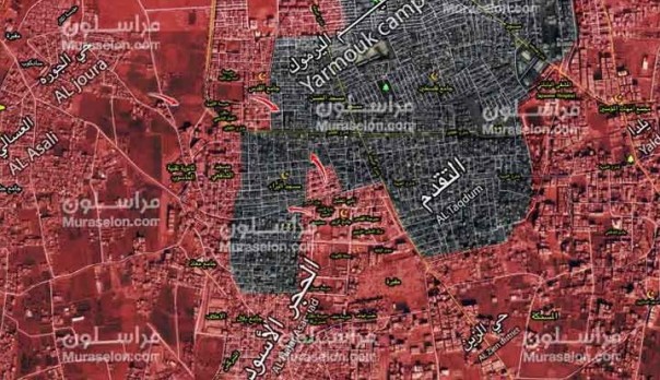 На данный момент банды ИГ потеряли 2/3 от ранее имевшейся под их контролем территории южного Дамаска. Пока еще они удерживают небольшую часть района Тадамон и около 70% лагеря Ярмук. Источник