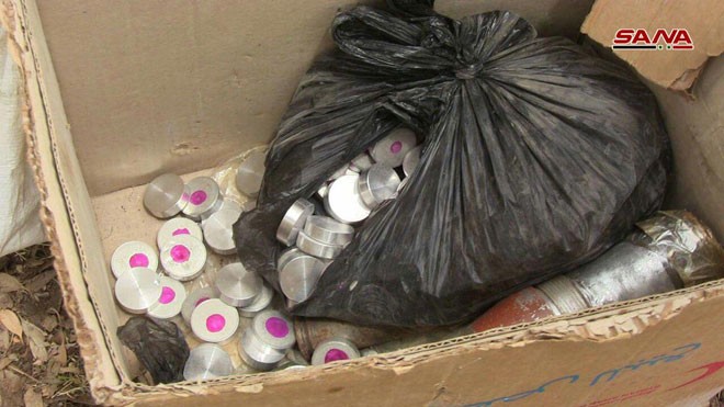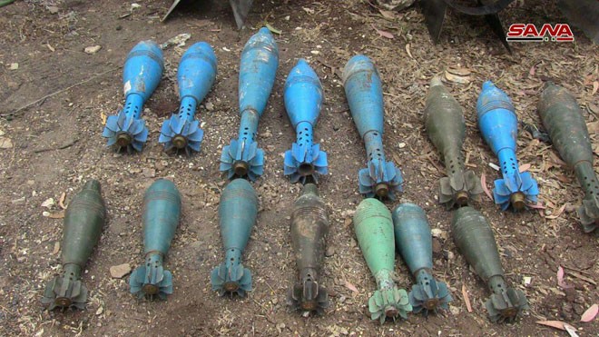 Компетентные органы в ходе прочесывания селений Тер-Мааля и Ад-Дар Аль-Кабира на севере провинции Хомс обнаружили большое количество различных видов оружия и боеприпасов, в частности мины, СВУ, взрывные вещества, оставленных террористами, а также самодельные реактивные системы залпового огня, патроны для пулеметов и респираторы. Об этом сообщил военный корреспондент агентства САНА.