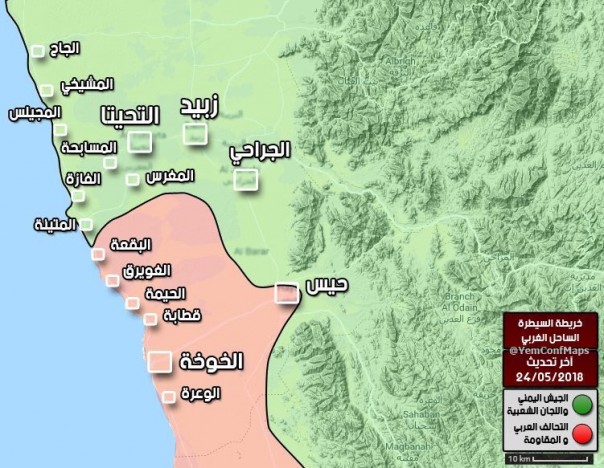 14.20 Просаудовские силы продолжают наступление вдоль побережья Красного моря по направлению к городу-порту Ходейда. Только за последние сутки ВВС Саудовской Аравии нанесли в данном районе не менее 30 авиаударов. Повстанцы отступают в направлении города, готовясь к боям в городской застройке.