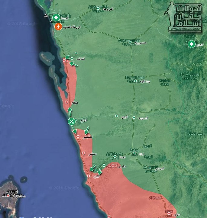 09.20 По сообщениям местных источников, йеменские повстанцы-хуситы неожиданно атаковали наступающую на город Ходейда группировку просаудовских формирований. Повстанцы заняли ряд населенных пунктов на побережье Красного моря, тем самым отрезав прорвавшиеся вперед отряды противника от основных сил.