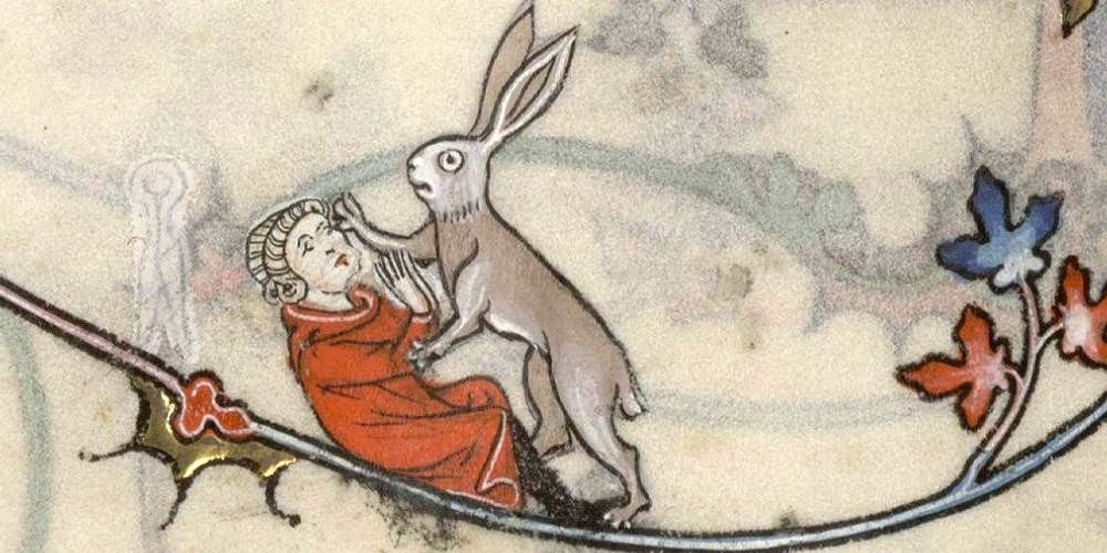 Выстрелы их не пугали, зайцы устроили зерг-раш (мем из игры StarCraft; любой массовый слабо организованный набег, в котором производится попытка взять толпой. — Прим. ред.). Они забирались в кареты придворных, ползали по камзолам прославленных генералов, залезали в юбки дам и самозабвенно карабкались по лосинам придворных.