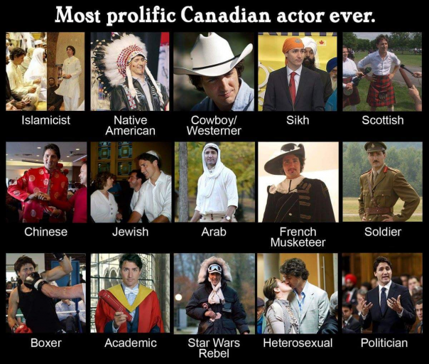 Премьер-министр Канады – такой ярко выраженный фейк, он даже носит поддельные брови; которые, кажется отклеились и соскользнули под горячими софитами на пресс-конференции.