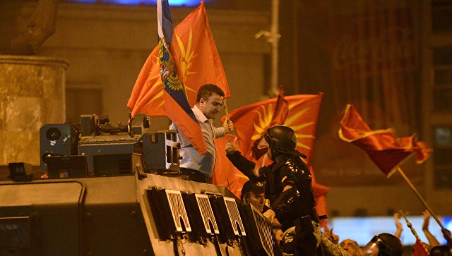 В Македонии во время акции протеста лидер оппозиции поднял флаг России