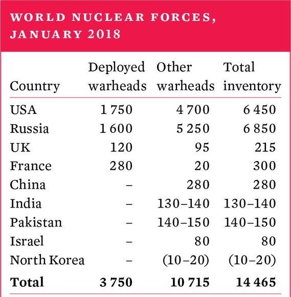 На своей странице в Twitter Зариф разместил таблицу с количеством ядерных зарядов, имеющихся у различных стран на январь 2018 года, со ссылкой на Стокгольмский международный институт исследования проблем мира. В этом списке упомянут Израиль с 80 единицами ядерного оружия. При этом официально Израиль не подтверждает и не опровергает наличия у него боеголовок.